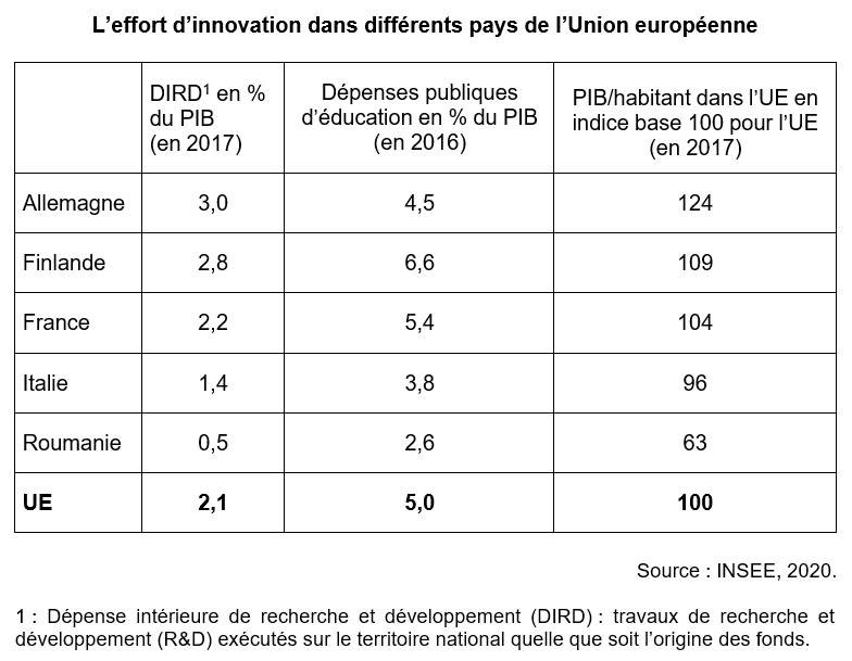 La fiche nous rappelle que les DIRD nécessitent un fort capital humain d’une part pour faire de la R&D, d’autre part pour utiliser les innovations de procédé. Ces deux investissements participent à la stimulation du PIB.