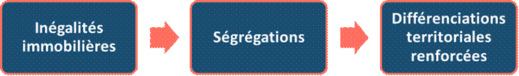 Le lieu de résidence organise l’espace social via la ségrégation socio-spatiale. Le processus repose sur la logique économique de prix du foncier, de marché immobilier et de concentration des services. Tous les territoires (urbains, périurbains, ruraux) ne disposent pas des mêmes ressources, ce qui produit des inégalités d’accès aux services publics (notamment à l’éducation et la santé) et aussi à l’emploi.