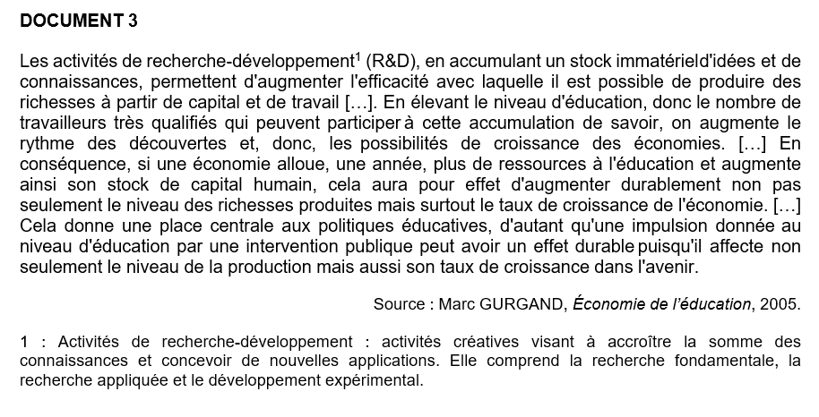 Sujet type baccalauréat (EC3): À l’aide de vos connaissances et du dossier documentaire, vous montrerez que le progrès technique est endogène.